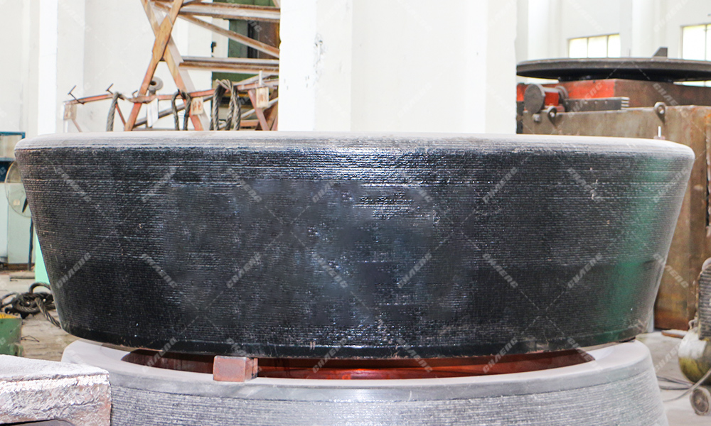 在立磨運(yùn)行的過程中,輥套的外表面長期與物料接觸,受到來自物料的擠壓和沖擊,容易受到磨損,因此應(yīng)定期對輥面進(jìn)行堆焊修復(fù)。
